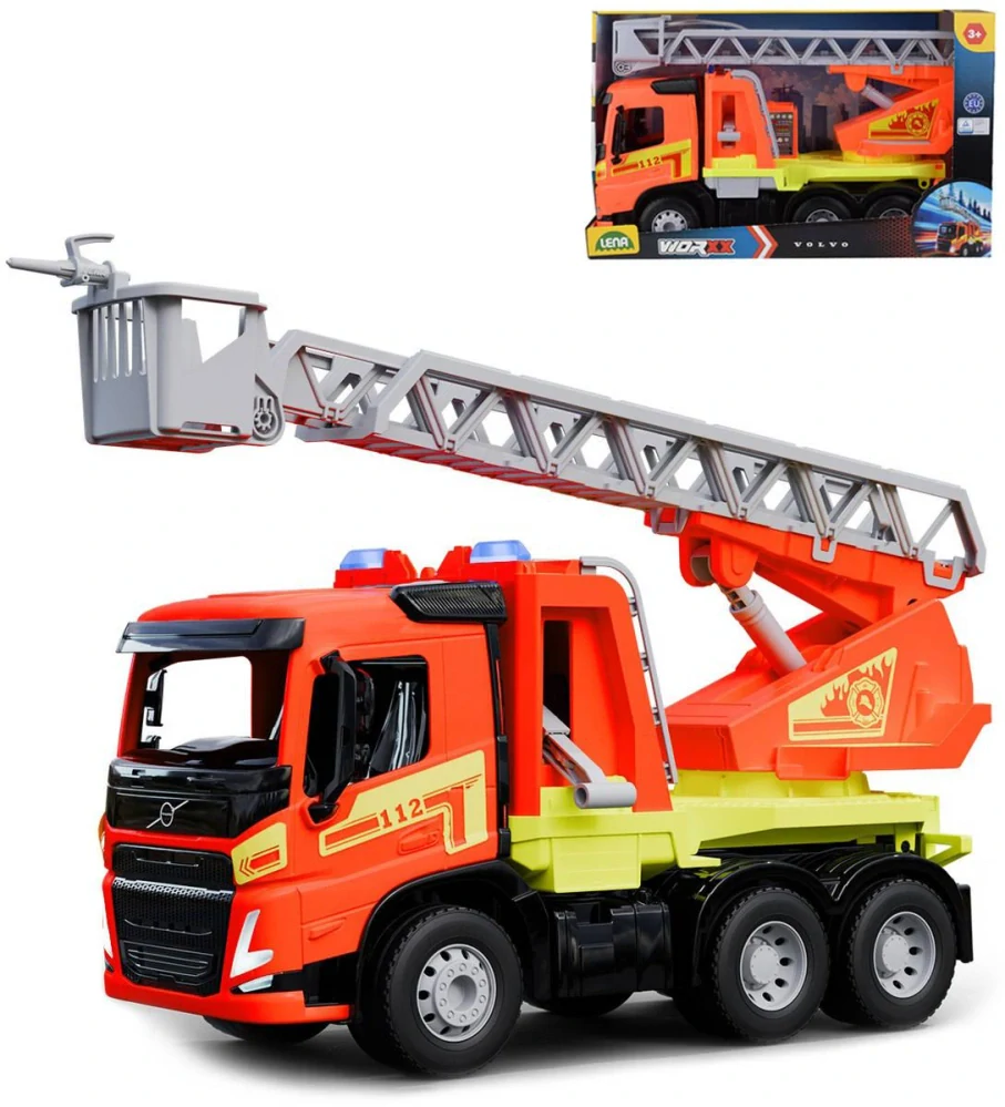 LENA 4625 - Hasičské auto Volvo. Kvalitní plast, funkční části, pevná konstrukce, stříká vodu. Velikost 48cm.