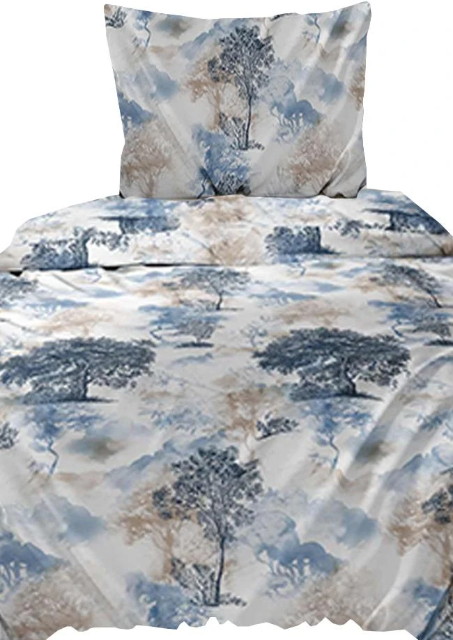 Bavlněné saténové povlečení - Stromy modro/béžové 5075A