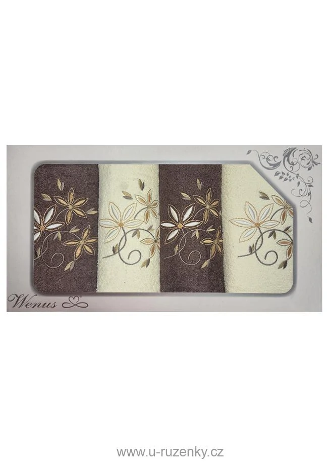 Dárkové balení ručníků a osušek Wenus VI - Květiny hnědokrémové 5990 Kč/ ks