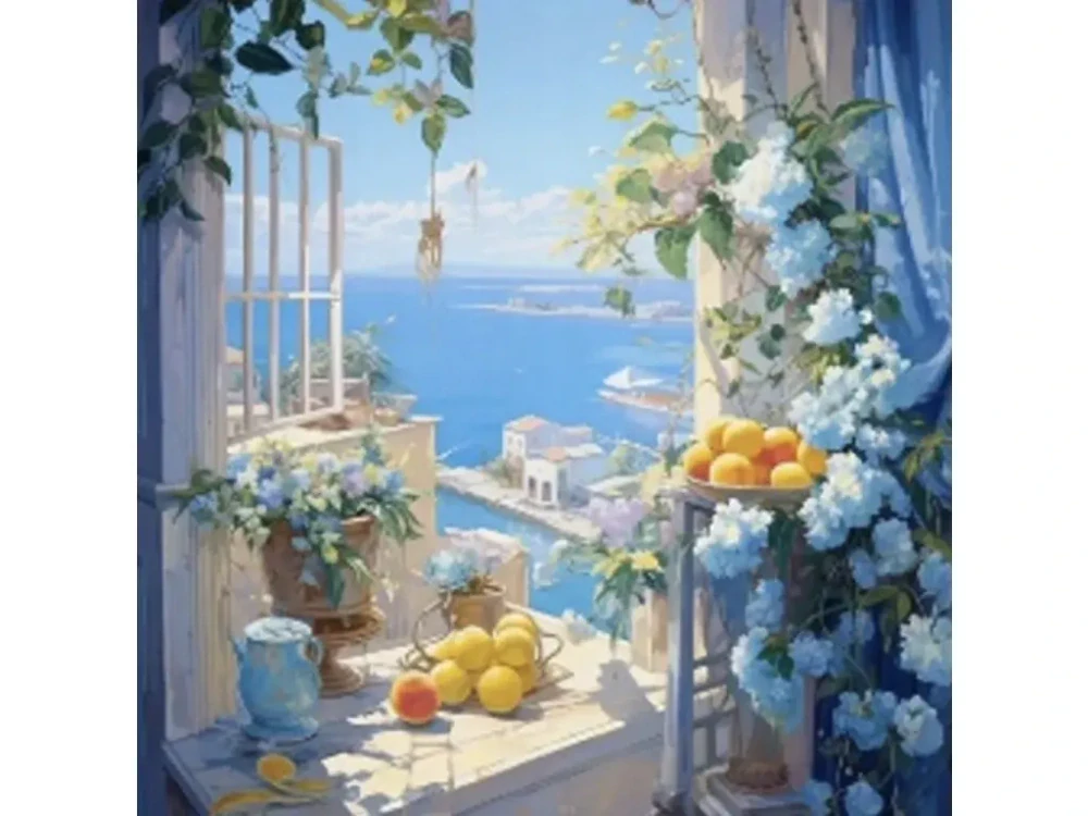 Diamantový obrázek - výhled na moře 30 x 40 cm