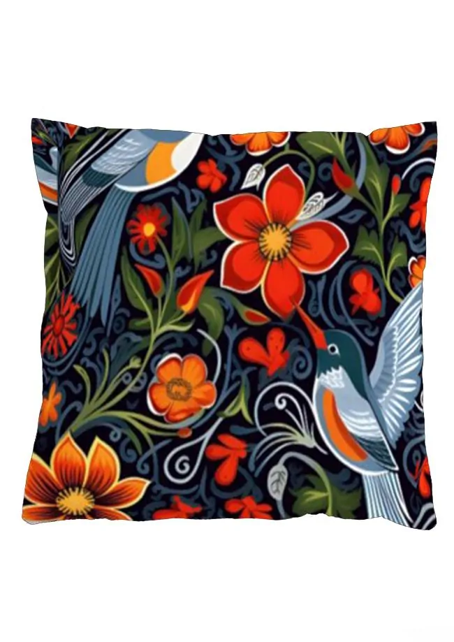 Povlak na polštář 40x40 na zip velur - Ptáci a květiny