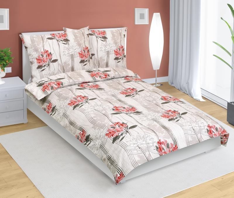 Povlečení krepové Kvítek červená, béžová 140x220, 70x90 cm