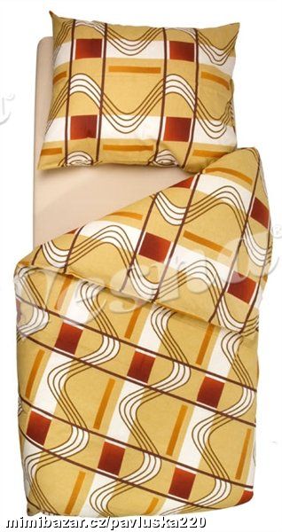 Povlečení ve výrazném, ale příjemně světlém okrovém odstínu se velmi dobře kombinuje s klasickým dřevěným nábytkem. Velmi zajímavý design tvoří vlnky a kostky, které dělají povlečení netradičním a ihned na sebe poutají pozornost. Je stvořené pro ty, co milují klasiku, ale zároveň touží po inovaci.