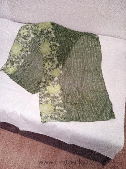 Šifónová šála v barvách zelených s přidáním lurexu Elegantní chiffonová šála bude zajímavou součástí dámského šatníku.