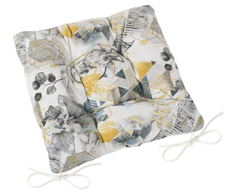 Prošívaný sedák se šňůrkami na zavazování. Materiál je velice kvalitní a odolný vůči prosezení. Krásně se dá kombinovat s polštářkem, chňapkou, zástěrou nebo ubrusem ve stejném dezénu.
